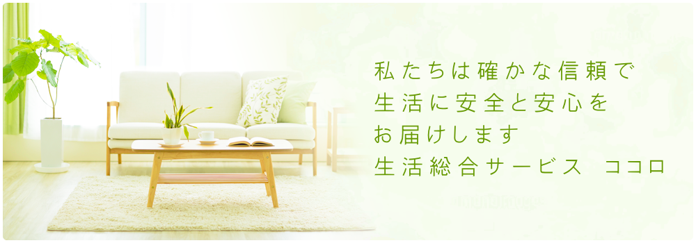 生活総合サービス ココロは、総合便利屋業を専門とする地域の皆様にお役に立てる会社です。 トピックス 総合便利屋業として当地域の皆様にお役に立てるよう、生活に係わる全てのこと対応いたします。 モットーは 【 安心・真心・初心 】 です。 お気軽に連絡をください。お待ちしています。